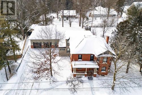 This charming 3-Bedroom, detached 1.5-storey home is located in the desirable St. George Park area of Guelph. The home has been meticulously cared for, w/ tasteful updates & design choices throughout. The spacious kitchen features new stainless steel appliances & matching sink & faucet. A window above the sink allows natural light to fill the space and the cutout between the kitchen & dining/living area keeps you connected with family & guests while preparing meals. This room also has a large front window that frames a picturesque view of the lawn & mature trees. There is a main-floor BDRM (the perfect home office) & just down the hall is an updated 4-piece BATH. The great room addition at the back of the home provides a cozy, sun-filled retreat w/ wraparound windows, pot lights & a corner gas fireplace. Sliding glass doors lead to a covered deck, which opens to a spacious, fully fenced backyard & patio area. There is even a detached workshop (10 ft x 28 ft) equipped w/ cabinets, shelving, lighting, & electrical, offering space for yard equipment, tools, & storage. It could also make an excellent studio. On the second floor, the primary BDRM has ample space for your bed & additional furniture, as well as a closet and large window. There is another well-sized BDRM on this floor with a closet, large window and room for a bed and some furniture. At the top of the stairs, an adorable built-in linen closet provides extra storage. The finished rec room in the basement is perfect for relaxation & entertaining, w/ pot lights, carpeting, built-in shelving, & a built-in bar w/ storage. The laundry area includes a sink, shelving, & extra storage, plus a cold room at the back. The long tandem driveway accommodates 3 cars. Close to great schools, parks, recreation centre, public transit & lots of amenities. Recent Updates: laminate flooring, AC(2025), fridge/stove(2025), dishwasher(2022), water softener(2021), roof ridge cap repair(2024) Don't miss this fantastic opportunity!