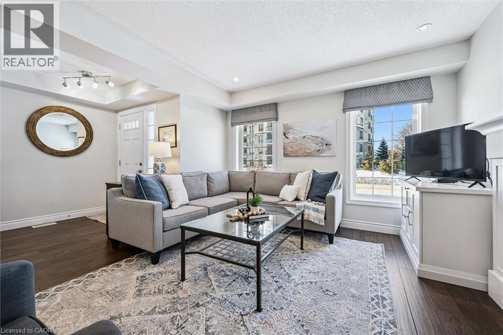 Exceptionally maintained and thoughtfully curated, 54-635 Saginaw Parkway is an executive townhome in North Galt offering refined finishes, generous living space, and a prime location close to schools, shopping, and the 401. Offering approximately 2,200 sq ft of finished living space (1,750 sq ft above grade plus a 450 sq ft finished walkout basement), this home blends style and functionality across all three levels. The bright, open-concept main floor features engineered hardwood flooring and a stunning modern kitchen with granite countertops, a large centre island, soft-close cabinetry, under mount lighting, stylish backsplash, stainless steel appliances, and elegant pendant lighting, flowing seamlessly into the spacious family room with a cozy gas fireplace, alongside a generous dining area and versatile bonus space ideal for a home office or sitting area. A stylish 2-piece powder room and double doors leading to a private terrace complete the main level. Upstairs, you'll find three generously sized bedrooms with hardwood flooring, including a primary suite with a walk-in closet and a beautifully finished 3-piece ensuite with double vanity and tiled shower, as well as convenient upper-level laundry and a 4-piece family bath. The fully finished walkout basement adds exceptional value with custom built-in cabinetry, a spacious rec room, dedicated office area, a 2-piece bathroom, inside access to the garage, and a welcoming foyer with double closets, making this move-in-ready home an exceptional opportunity for executive townhome living. (id:7525)